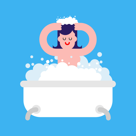 浴中の女の子孤立 女性の洗浄 お風呂と泡 ベクターイラストのイラスト素材 ベクタ Image